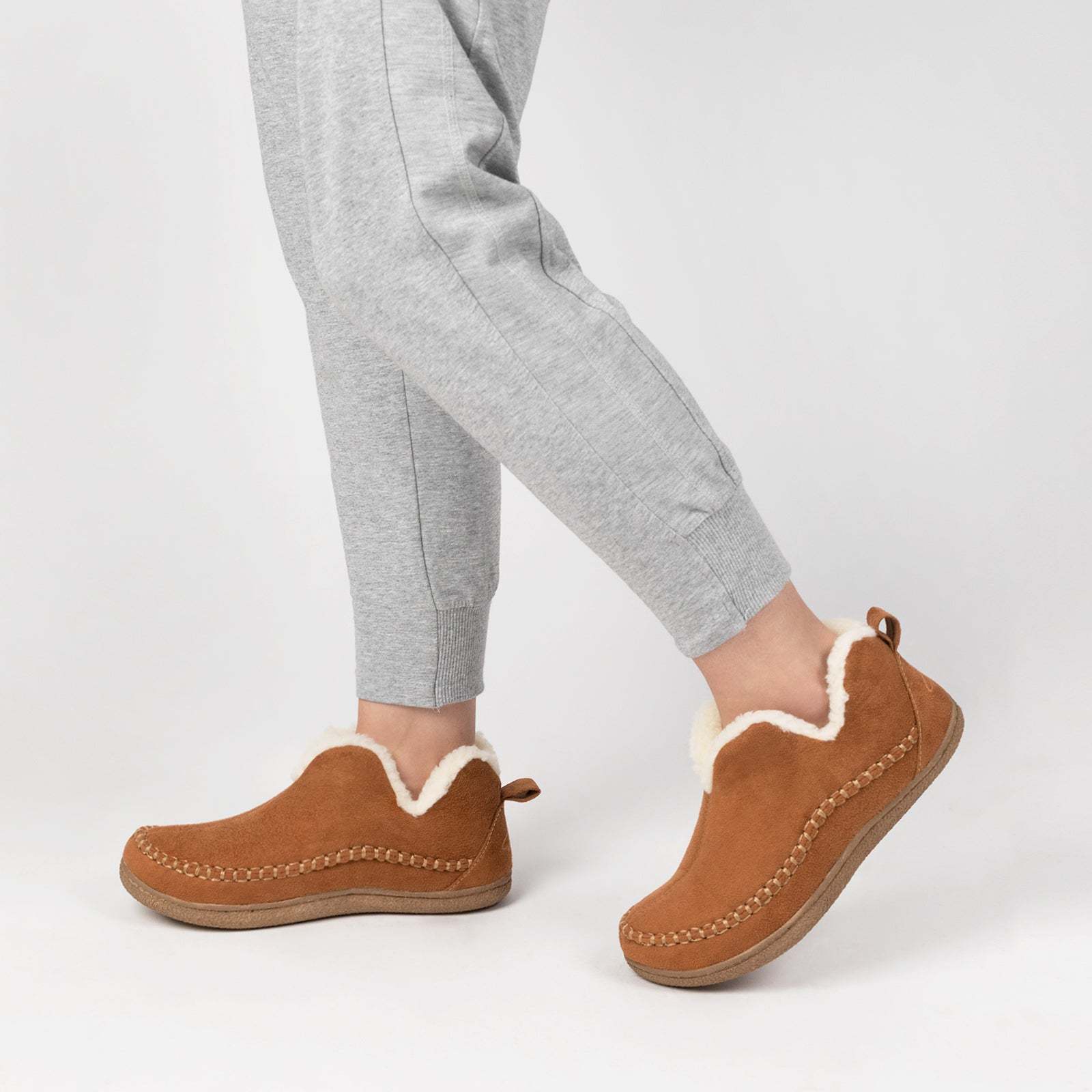 Vattentåligt skydd: Förstklassigt mockaliknande material skyddar dina fötter mot regn och stänk.