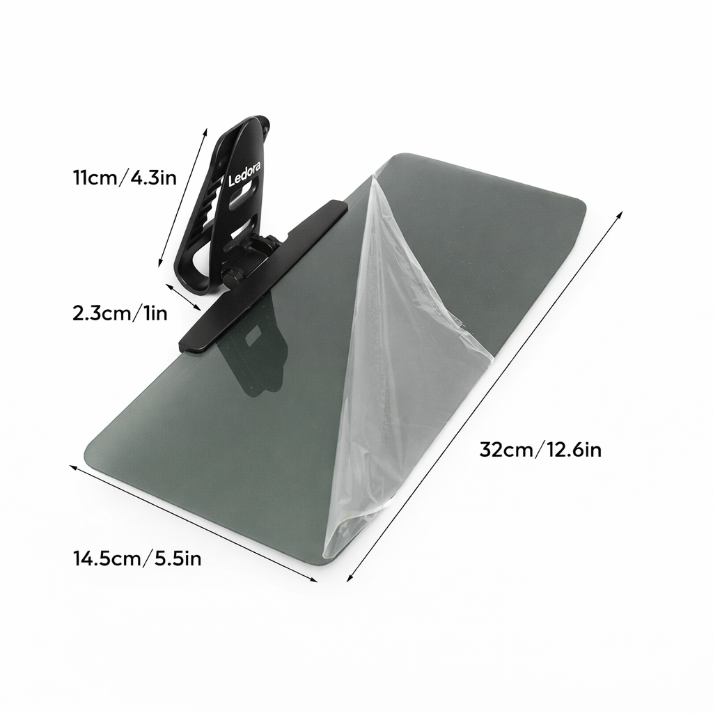 Ledora Anti-Bländningsskydd monteras snabbt på bilens solskydd och justeras enkelt efter din körposition.